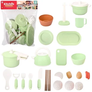 Zestaw naczyń 27el Trifox. Zabawka. Zestaw Akcesoriów Kuchennych "Little Chef's Kitchen" - Zielony Serwis do Herbaty i Gotowania z JedzeniemKrótki opis: Rozwiń kulinarne talenty swojego dziecka z uroczym zestawem "Little Chef's Kitchen"! Ten bogaty komplet akcesoriów w. . .