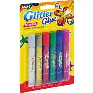 Klej brokatowy Amos GCL10B6. Świetnie sprawdza się przy ozdabianiu rysunków, malowideł oraz wykonywania fantazyjnych napisów. Doskonały do dekoracji przedmiotów z gliny czy masy solnej.