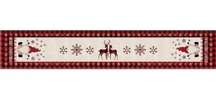 BIEŻNIK, SZARFA RENIFERY Bieżnik, szarfa bożonarodzeniowa, świąteczna. RENIFERY CZERWONO - CZARNA KRATA Z KREMOWYM ŚRODKIEM. Wymiar: 183x33 cm