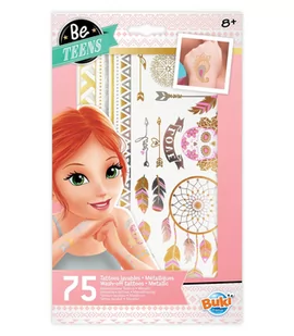 zmywalne tatuaże w zestawie 2 arkusze wysoka jakość wykonania metaliczne 75- 75 sztuk Jak się bawić: 1) wyciąć wybrany wzór 2) przyłożyć do ciała obrazkiem do dołu 3) namoczyć wilgotną gąbką lub szmatką 4) odczekać około 20 sekund i zerwać papierek zabezpieczający wymiary arkusza: 22 x 14 cm certyfikat bezpieczeństwa CE Uwaga! Produkt nieodpowiedni dla dzieci poniżej 3 roku życia.