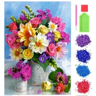 Bukiet Kwiatów Haft Diamentowa Mozaika Diamond Painting Rękodzieło