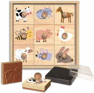 Drewniane pudełko do stemplowania zwierząt z farmy! Wymiary 18 x 18 x 4 cm Zawiera 9 drewnianych stempli i tusz Zalecany wiek 3+. Stemple z sitodrukiem mają ...