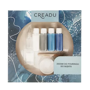 Creadu, Zestaw do pouringu Into The Blue zestaw do pouringu marki Creadu zawiera: 4 sztuki farb 60 ml biały szary niebieski ciemnoniebieski białe płótno - 30x30 cm olej silikonowy 25 ml 4 sztuki patyczków do mieszkania plastikowy pojemniczek para rękawiczek instrukcja ilość elementów: 13 wymiary w opakowaniu (wysokość x szerokość x głębokość): 31 x 31 x 3 cm zestaw nie odpowiedni dla dzieci poniżej 3 roku życia