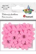 Dekoracje samoprzylepne plastikowe 3D kwiaty O33mm różowe z kryształkiem 20szt.