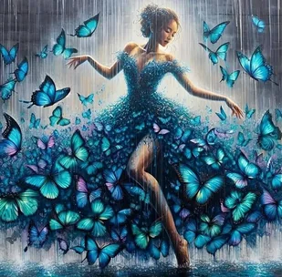 Diamentowa Mozaika Kobieta Deszczowa Tancerka I Motyle