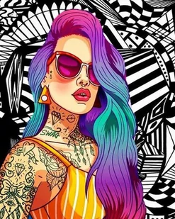 Diamentowa Mozaika Kobieta W Tatuażach 30x40