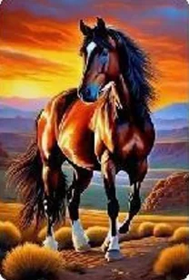 Diamentowa Mozaika Koń Na Tle Zachodzącego Słońca 30x40