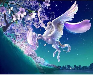 Diamentowa Mozaika Koń Pegaz Nad Zielonym Zwgórzem 30x40