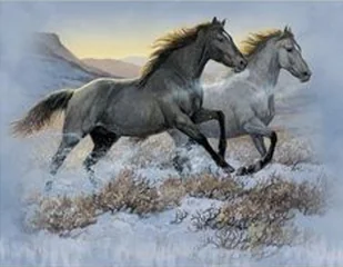 Diamentowa Mozaika Konie Czarny I Biały Galopujące Przez Step 30x40