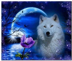 Diamentowa Mozaika Wilk I Księżyc 30x40