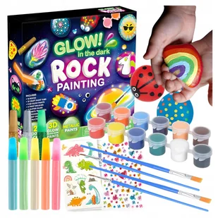 ➡️ Co wyróżnia ten zestaw? Gotowy do użycia – zestaw zawiera wszystkie niezbędne elementy, dzięki czemu można od razu rozpocząć malowanie i dekorowanie kamieni. Efekt świecenia w ciemności – farby fosforyzujące sprawiają, że prace nabierają wyjątkowego uroku po zmroku. Rozwój kreatywności – wspiera wyobraźnię, precyzję ruchów oraz zdolności manualne dziecka. Bezpieczna zabawa – farby przeznaczone do kreatywnych prac dzieci, zalecane użycie pod nadzorem osoby dorosłej. Idealny pomysł na prezent – atrakcyjne, kolorowe opakowanie i bogata zawartość sprawiają, że zestaw doskonale nadaje się na podarunek.