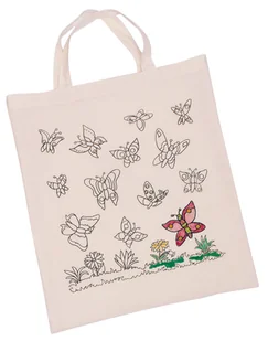 Goki Torba do kolorowania Motylki. Torba. Bawełniana torba z uszami, z wzorem do pokolorowaniaPokolorowane według własnego pomysłu motylki nadadzą jej niepowtarzalnego charakteruWymiary torby: 42 x 38 cmDo ozdabiania torby polecamy specjalne kredki do rysowania po tkaninach