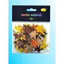 Elementy z mikrogumy brokatowej : Gwiazdki, wielkość ca. 3,5 cm miks kolorów ciepłych.Kod : DS5210-GZ