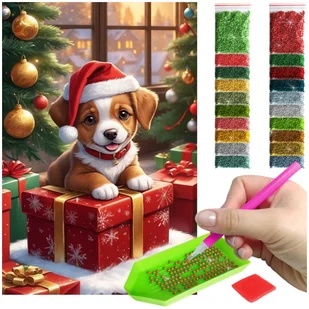 HAFT DIAMENTOWY (40x60cm) – Piesek i prezent