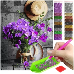 Haft Diamentowy ARTULIO, Obraz DIY 5D, Diamond Painting, Mozaika diamentowa 30x40cm (Różowe kwiatki na stole) + zestaw akcesoriów