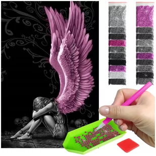 Haft Diamentowy ARTULIO, Obraz DIY 5D, Diamond Painting, Mozaika diamentowa 40x60cm (Anioł z różowymi skrzydłami) + zestaw akcesoriów