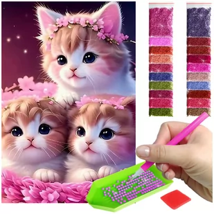 Haft Diamentowy Diamond Painting mozaika koteki pośród różowych kwiatów zestaw akcesoria Męczy cię stres? Szukasz spokoju? A może po prostu lubisz robótki rę...