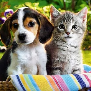PŁÓTNO Z MOTYWEM PSA I KOTA ZESTAW ZAWIERA: płótno, na którym nadrukowany został wzór i które pokryte jest specjalną warstwą klejącą, która umożliwia przyklejanie diamencików diamenciki o różnych kolorach, które są posegregowane w ponumerowane i oznaczone odpowiednimi symbolami woreczki aplikator, który umożliwia nakładanie diamencików na płótno plastikowy pojemnik do przechowywania diamencików suchy klej indeks diamencików wraz ze schematem i instrukcją ich naklejania INSTRUKCJA Za pomocą końcówki wiertła naciśnij klej Dotknij przedniej części wiertła końcówką pióra Odkryj rysunek, zdejmując folię ochronną, przyjrzyj się licznym symbolom odpowiadającym kodowaniu kolorów z legendy. Pamiętaj:Aby nie usuwać całej folii ochronnej na raz,wystarczy usunąć folię ochronną z części, która za razem musi nałożyć diament Wklej wiertło do odpowiedniego symbolu obszaru roboczego Naciśnij dołączony obszar, aby dopasować wiertło Gotowy produkt powinien być przechowywany na rolce płótna. UWAGA!! Jest to DIY diamentowe malowanie, nie ukończony obraz, musisz go ukończyć samodzielnie. Materiał przycinany jest ręcznie w związku z tym podane wymiary mogą nieznacznie się różnić (1-3cm).