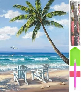 Mozaika haft diamentowy 5D - kompletny zestaw Model: D01 - morze palma Rozmiar: 40 x 30 cm Idealny zestaw na długie godziny rozrywki i relaksu z układaniem n...