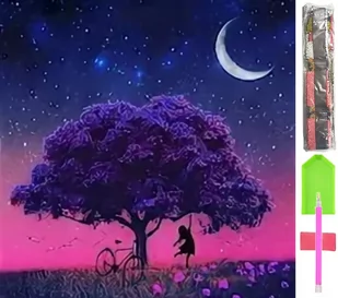 Mozaika haft diamentowy 5D - kompletny zestaw Model: D44 - drzewo nocą Rozmiar: 40 x 30 cm Idealny zestaw na długie godziny rozrywki i relaksu z układaniem n...