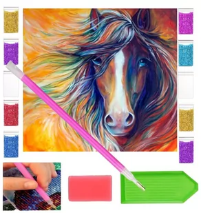 Haft diamentowy GRZYWA KONIA koń konie 40x40 OBRAZ b.duży zabawki kreatywne plastyczne