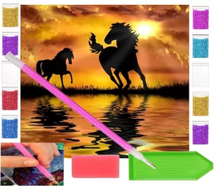 Gotowy obraz można oprawić w ramę lub powiesić bez ramki – z pewnością stanie się wyjątkową ozdobą wnętrza. Zestaw zawiera: ➡️ Płótno z warstwą kleju oraz nadrukowanym wzorem, ➡️ Okrągłe i posegregowane diamenciki w różnych kolorach, ➡️ Aplikator, który umożliwiający nakładanie diamencików, ➡️ Suchy klej na kostkach, Bezpieczeństwo❗ Pamiętaj, że małe elementy nie są odpowiednie dla dzieci, które wkładają jeszcze rzeczy do buzi. ❗ Produkt jest w kategorii 6+, więc jeśli chcesz, aby młodsze dzieci też się bawiły (a niektóre lubią to bardzo) zapewnij im odpowiednią kontrolę. ❗ Koniecznie posprzątaj dokładnie po zabawie.