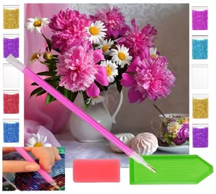 Haft diamentowy POLNE KWIATY WAZON Z KWIATAMI 30x30 OBRAZ duży zabawki kreatywne plastyczne