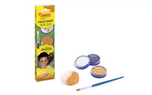 FARBY DO MALOWANIA TWARZY 3 poj. 8ml + pędzelek, gąbka Opakowanie zawiera: 3 pojemniki z farbami do malowania twarzy 8 ml w różnych kolorach, pędzelek gąbkę do makijażu. Nie wymagają stosowania wody, a dzięki kremowej konsystencji są wyjątkowo delikatne dla wrażliwej, dziecięcej skóry – nie podrażniają jej i nie wywołują reakcji alergicznych (nie zawierają parabenów oraz podstawowych substancji uczulających). Posiadają atest PZH.