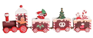 DREWNIANY POCIĄG świąteczna LOKOMOTYWA ciuchcia WAGONIKI Świąteczna dekoracja drewniana w formie pociągu z wagonikami z wesołymi postaciami. Figurki wykonane z drewna z dbałością o każdy detal. Idealnie nadaje się jako dekoracja na stół stroik lub dodatki do prezentów a także jako ozdoba na okno. Długość pociągu: ok. 20cm
