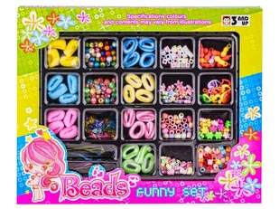 A wszystko to dzięki zabawie w projektanta i architekta jednocześnie! Aż trudno uwierzyć, ile korzyści przynosi taka zabawka: rozwija kreatywność, sprawność manualną, skupienie i spostrzegawczość. A przy tym zapewnia masa śmiechu i radości!Wspaniały prezent dla każdej dziewczynkiCudowne kolory i kształty koralików zachwycą każda dziewczynkę. A jeśli dodamy do tego możliwość stworzenia własnych ozdób do włosów, mamy hit na wiele godzin! W zestawie dziecko znajdzie wszystko, co potrzebne do stworzenia biżuterii i ozdób: żyłki w różnych kolorach, gumki do włosów i oczywiście setki koralików w zabawnych kształtach, m.