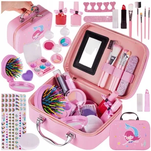 ⭐ Kolorowy Świat Urody w Twoich Rękach! ➯ Zestaw zawiera wszystko, co potrzebne do stworzenia magicznych stylizacji: cienie do powiek, szminki, lakiery do paznokci oraz akcesoria do makijażu. Dzięki nim Twoje dziecko może eksperymentować z różnymi stylami, rozwijając swoje zdolności artystyczne i poczucie estetyki. ⭐ Otwórz magiczny świat kolorów i fantazji ➯ Makijaż to nie tylko zabawa, ale także podróż przez świat wizażu i stylizacji. Dzięki bogatej różnorodności kosmetyków, dzieci mogą swobodnie wyrażać swoją kreatywność i odkrywać tajemnice piękna.