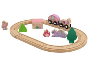 1,5+ Wymiary: maksymalna długość toru: ok. 1 m Waga: ok. 420 g Zakres dostawy: Farma: 8x zakręt 80, 2x prosta 150, 1x traktor, 1x przyczepa, 3x zwierzęta, 1x drzewo, 1x krzew, 1x farma (2 części) Księżniczka: 8x zakręt 80, 2x prosta 150, 1x jednorożec, 1x powóz; 1x księżniczka, 1x drzewo, 1x krzew, 1x smok, 1x ogień, 1x zamek (2 części) Straż Pożarna: