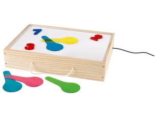 lupilu® Skrzynka świetlna drewniana Co oznacza sztuka Montessori? „Uczenie się poprzez własne doświadczenie” to zasada, według której projektowane są zabawki Montessori. W pedagogice Montessori szczególną uwagę zwraca się na naukę wszystkimi zmysłami. Dotykowe materiały edukacyjne wzbudzają ciekawość, a materiał do nauki jest przyswajany intuicyjnie. Opis produktu Wspiera logiczne myślenie oraz naukę liczb i teorii kolorów w zabawny sposób Z 6 szablonami kolorów i liczbami od 0 do 9 Z regulowaną zmianą kolorów za pomocą pilota Wykonane z prawdziwego drewna i wytrzymałego tworzywa sztucznego 18-częściowy Pilot z baterią w zestawie W zestawie kabel USB Cechy produktu table{width:100%;}td{padding-right: 30px; padding: 0.5rem; border-bottom: 0.0625rem solid #e3e4e5;} tr: nth-child(odd) {background-color: #F2F3F4;} Wiek: