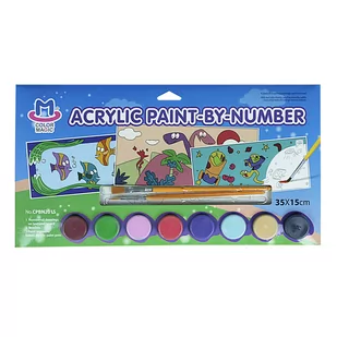 na twardym kartonie naklejone jest płótno malarskie o wymiarach 35 x 15 cm z nadrukowanym wzorem w zestawie również 2 pędzelki i 8 farbek zestaw zawiera jedn...
