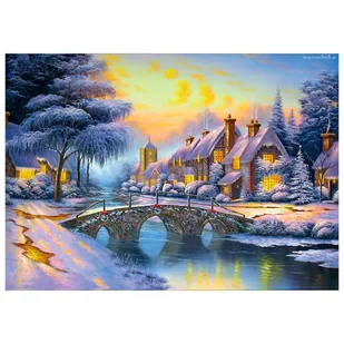 Mozaika diamentowa, haft 30x40 Zima - domek i most Flamingo line