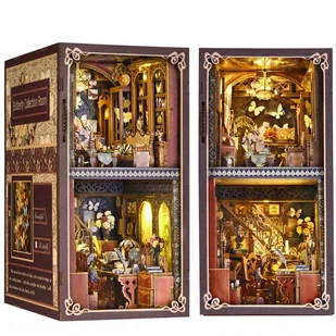 Miniaturowy domek "Muzeum motyli"Miniaturowy domek DIY do samodzielnego montażu Book Nook - BuchartSpecyfikacja: Produkt składa się w większości (ok. 80%) z gotowych pomalowanych elementów drewnianych umieszczonych na deseczkach - złożenie domku polega na umieszczeniu drewnianych elementów w otworach konstrukcji domku, zgodnie z krokami wskazanymi w instrukcjiWymiary zmontowanego modelu: 18,5 cm (długość), 11,3 cm (szerokość), 23,6 cm (wysokość). Model zamknięty z czterech stronMateriał: drewno - elementy wycinane laserowoPrzycisk światła na górze domkuWysokiej jakości nadruk (druk UV), z dużą dbałością o szczegółyECO ognioodpornyLiczba elementów: