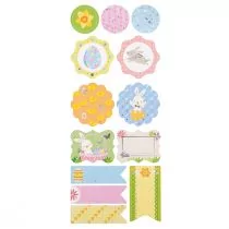 Arkusz kolorowych naklejek z wielkanocnymi motywami.Doskonałe do zdobienia projektów scrapbookingowych, kartek okolicznościowych, pakowania prezentów, a także do wszelkiego rodzaju dziecięcej aktywności twórczej.