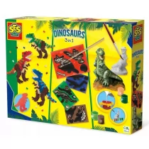 Uwaga fani dinozaurów! Dzięki temu zestawowi dinozaurów 3 w 1 od SES Creative możesz błyskawicznie tworzyć zwierzęce giganty 2D i 3D lub wydrapywać ukryte szkielety. Masz ochotę na dinozaury z koralików? Nic prostszego! Wystarczy skopiować przykładowe szablony lub zaprojektować własne groźne olbrzymy z epoki kamienia łupanego. Wystarczy umieścić naprasowanki w ulubionych kolorach na tablicy, poprosić dorosłego o ich naprasowanie i gotowe! Ale to nie wszystko, ponieważ zdrapki są szczególnie ekscytujące dla ciekawskich młodych archeologów. Ale co kryje się za czarnymi obszarami zdrapek? Wystarczy podrapać drewnianym ołówkiem, aby się tego dowiedzieć! Zestaw rzemieślniczy ma również coś do zaoferowania w 3D: Jeśli chcesz mieć własnego T-Rexa, najpierw wlej gips do formy i pozostaw do stwardnienia.