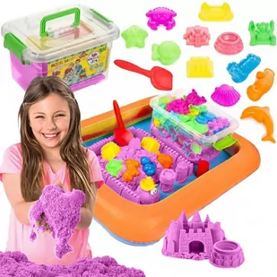 PIASEK KINETYCZNY 2kg FOREMKI BASEN ZESTAW Ten niezwykły zestaw umili Twojemu dziecku czas na długie godziny! Magiczny piasek kinetyczny to substancja która została stworzona według ścisłej receptury gwarantującej zabawę w piasku bez brudzenia się. Właściwości sprawiają że piasek się nie rozsypuje jednocześnie bardzo dobrze łącząc się ze sobą. Doskonale nadaje się do użytku w domu. KREATYWNIE I BEZPIECZNIE Kinetyczny piasek z foremkami i piaskownica to świetna propozycja dla najmłodszych. Magiczny piasek pobudza wyobraźnie oraz rozwija zdolności manualne.