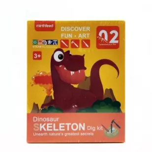 Skamielina posiadająca wielki szkielet dinozaura wraz z potrzebnymi narzędziami do jego wydobycia. Zacznij wyżłopywać skamielinę dołączonymi narzędziami, aż znajdziesz wszystkie części szkieletu Tyranozaura. Po skompletowaniu i złożeniu szkielet ma 24 cm długości. Z tym zestawem dziecko poczuje się jak prawdziwy archeolog. Produkt rozwija umiejętności manualne i wyobraźnie.