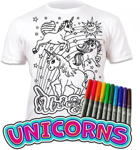 Splat Planet Koszulka do wielokrotnego kolor. Jednorożec 7-8. Koszulka. Każde opakowanie zawiera koszulkę i zestaw 10 magicznych pisaków do kolorowania Pisaki są nietoksyczne i zmywalne Po zakolorowaniu koszulki można ją wyprać i pokolorować od nowa Koszulki występują w kilku rozmiarachMateriał: . . .
