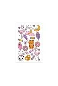 Tatuaże dla dzieci z różnorodną grafiką (są zmywalne). Wykonane głównie w kolorze różowym. Opakowanie zawiera zawieszkę i instrukcję jak wykonać tatuaż. Wymiary opakowania i produktu: 13x8,5cm