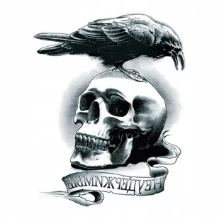 Tatuaż zmywalny tymczasowy wodny CZASZKA / KRUK Tatuaż tymczasowy to naklejka, która naśladuje wygląd prawdziwego tatuażu. Tatuaż tymczasowy zmywalny utrzymu...