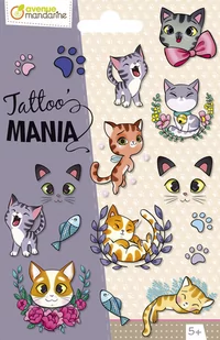 My Mandarine CC056C – TATOO'MANIA (tatuaże zmywalne) – 1 arkusz 10,5×16 cm – 15 tatuaży – od 5 lat – Koty