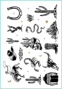 Tatuaże tymczasowe zmywalne dziki zachód, arkusz A4