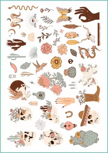 Kolorowe tatuaże zmywalne ze wzorami nawiązującymi do meksykańskiej tradycji. Przed aplikacją tymczasowego tatuażu wykonaj próbę alergiczną na niewielkim fra...