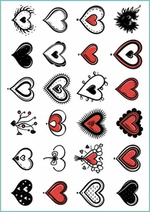 Zestaw naklejek na ciało w kształcie serduszek z kolorach czerni i czerwieni. Serduszka sprawdzą się idealnie jako ozdoba ciała podczas ciepłych miesięcy. Pr...
