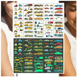 TATUAŻE ZMYWALNE ŚWIECĄCE W CIEMNOŚCI AUTA KOPARKI 10 WZORÓW ⭐⭐⭐⭐⭐ Zestaw tatuaży zmywalnych dla dziewczynki i chłopca. W komplecie znajduje się aż 10 różnych, wesołych motywów, które łatwo nakleić i bezpiecznie zmyć. Idealna zabawa na co dzień, urodziny czy przyjęcia dla dzieci.