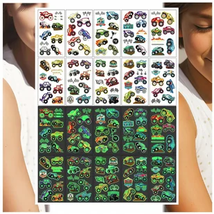 TATUAŻE ZMYWALNE ŚWIECĄCE W CIEMNOŚCI AUTA MONSTER TRUCK 10 WZORÓW ⭐⭐⭐⭐⭐ Zestaw tatuaży zmywalnych dla dziewczynki i chłopca. W komplecie znajduje się aż 10 różnych, wesołych motywów, które łatwo nakleić i bezpiecznie zmyć. Idealna zabawa na co dzień, urodziny czy przyjęcia dla dzieci.