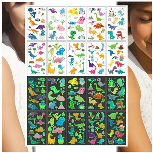 TATUAŻE ZMYWALNE ŚWIECĄCE W CIEMNOŚCI DINOZAURY 10 WZORÓW ⭐⭐⭐⭐⭐ Zestaw tatuaży zmywalnych dla dziewczynki i chłopca. W komplecie znajduje się aż 10 różnych, wesołych motywów, które łatwo nakleić i bezpiecznie zmyć. Idealna zabawa na co dzień, urodziny czy przyjęcia dla dzieci.
